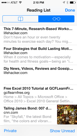 Tap here to see your bookmarks and reading list. You can still read websites that you've added to your reading list when your iPhone is offline.