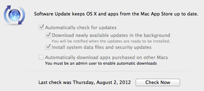 The App Store can automatically check for OS X and app updates. You can also go here to automatically download apps purchased on another Mac or to see when the last update occurred.
