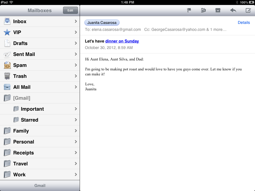 As you already know, the Mail app is different on each device—but there are many similarities when it comes to basic tools and features. Use the interactive below to learn how to perform several common tasks in the iPad version.