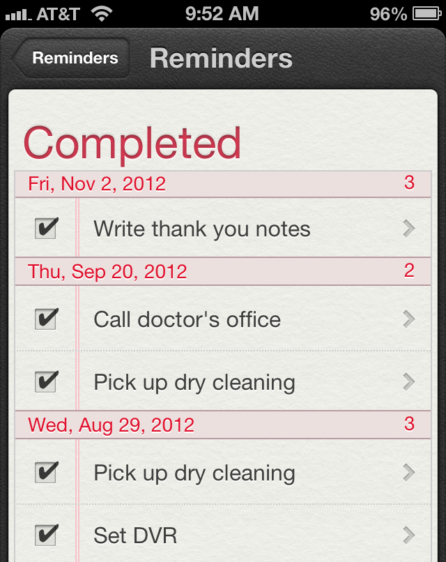 Completed Reminders