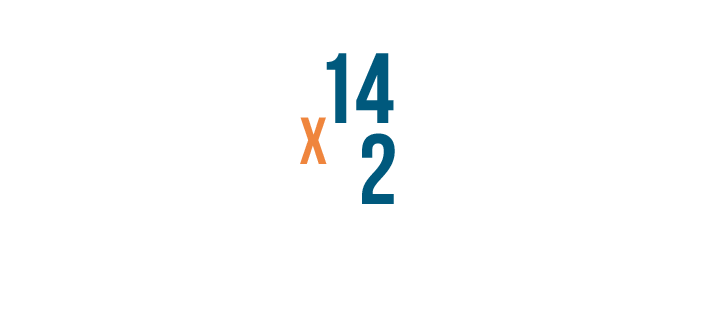 This problem is harder to solve. Counting the pears would take a while. Plus, there's no 14 on the times table. Fortunately, there's a way to write the problem so that you can break it into smaller pieces. It's called stacking. It means that we'll write the numbers on top of one another instead of side by side.