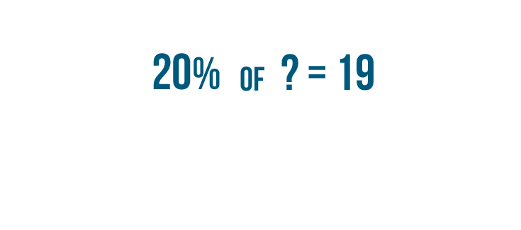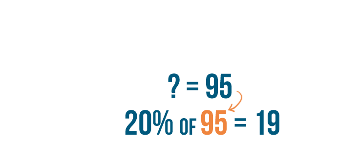 • We can replace the question mark in our original example with 95. Now we know that 19 is 20% of 95.