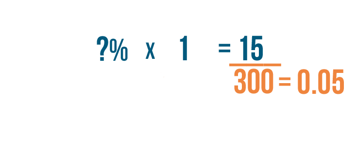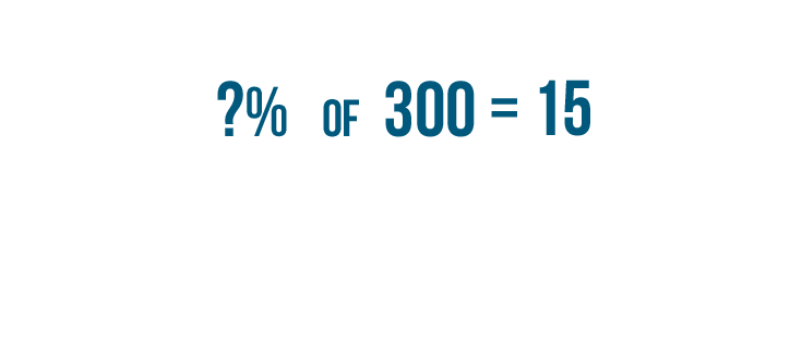 • Now we can replace the question mark in our original problem with 5%. So 15 is 5% of 300.