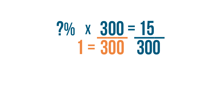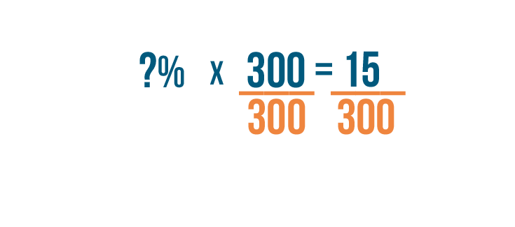 • Let's try another example. We're going to find what percent is equal to 15 out of 300.