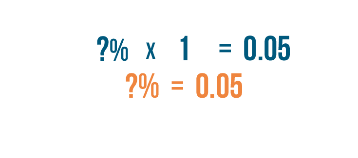 • Now we'll turn 0.05 into a percent by moving the decimal point two places to the right. 0.05 is equal to 5%.