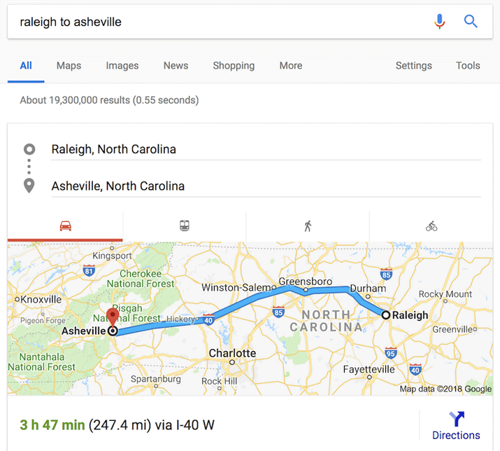 If you want driving directions for this route, just click the Directions icon in the corner.