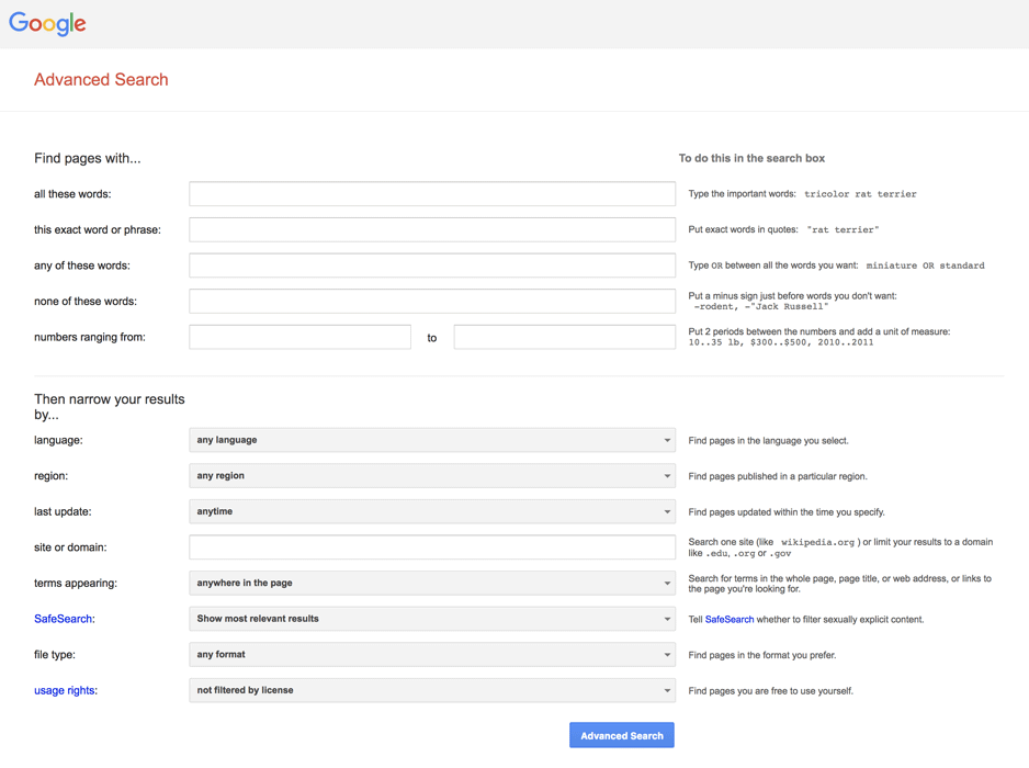 . From there, you can search in a multitude of ways, from finding results that contain an exact word or phrase to narrowing down your results by language or reading level.