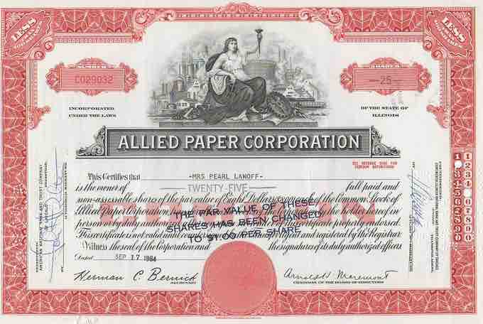 Allied Paper Corp. Common Stock Certificate