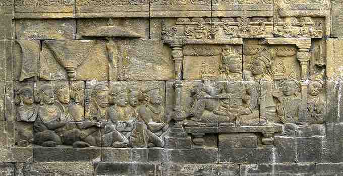 • The most famous examples of monumental relief sculptures in Southeast Asia are to be found in the 9th-century Buddhist temple of Borobudur in Java, Indonesia.