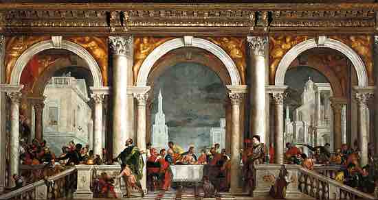 On the other hand, in Paolo Veronese's painting The Last Supper (subsequently renamed The Feast in the House of Levi), one can see what the Council regarded as inappropriate. Veronese was summoned before the Inquisition on the basis that his composition was indecorous for the refectory of a monastery. The painting shows a fantasy version of a Venetian patrician feast, with, in the words of the Inquisition: "buffoons, drunken Germans, dwarfs and other such scurrilities" as well as extravagant costumes and settings. Veronese was told that he must change his painting within a three-month period; instead he simply changed the title to The Feast in the House of Levi .
