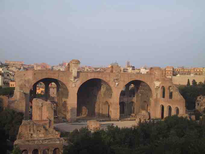 When Constantine and Maxentius clashed at the Milvian Bridge, Maxentius was in the middle of building a grand basilica, eventually renamed the Basilica Nova, near the Roman Forum. The basilica consisted of one side aisle on either side of a central nave.