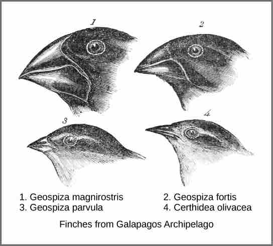 Darwin observed that beak shape varies among finch species. He postulated that the beak of an ancestral species had adapted over time to equip the finches to acquire different food sources.