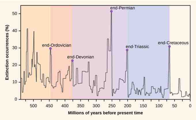 • The largest mass extinction event in earth's history, which occurred at the end of the Permian period, resulted in a loss of roughly 95 percent of the existing species at that time.