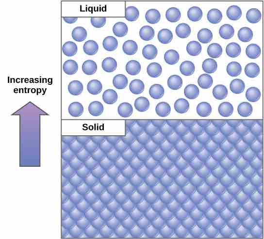 An important concept in physical systems is disorder (also known as randomness). The more energy that is lost by a system to its surroundings, the less ordered and more random the system is. Scientists define the measure of randomness or disorder within a system as entropy. High entropy means high disorder and low energy. To better understand entropy, remember that it requires energy to maintain structure. For example, think about an ice cube. It is made of water molecules bound together in an orderly lattice. This arrangement takes energy to maintain. When the ice cube melts and becomes water, its molecules are more disordered, in a random arrangement as opposed to a structure. Overall, there is less energy in the system inside the molecular bonds. Therefore, water can be said to have greater entropy than ice.