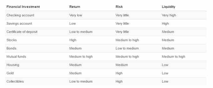 This chart shows some estimations of various types of capital investments, alongside their respective risk, return, and liquidity.