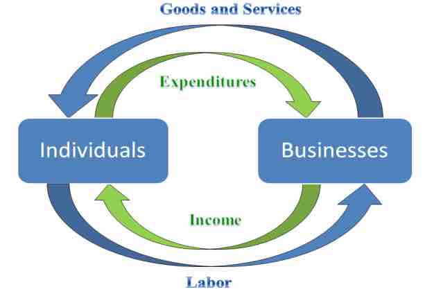 Refers to a simple economic model which describes the reciprocal circulation of business and the global economy.
