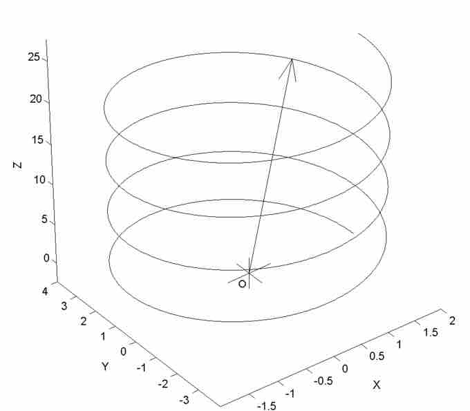 $x(t) = 2 \cos(t)y(t) = 4 \sin(t)z(t) = t$.