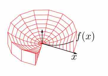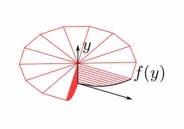 A solid of revolution is a solid figure obtained by rotating a plane curve around some straight line (the axis) that lies on the same plane . Here, we will study how to compute volumes of these objects. Two common methods for finding the volume of a solid of revolution are the disc method and the shell method of integration. To apply these methods, it is easiest to draw the graph in question; identify the area that is to be revolved about the axis of revolution; determine the volume of either a disc-shaped slice of the solid, with thickness
