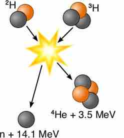 Fusion of deuterium with tritium