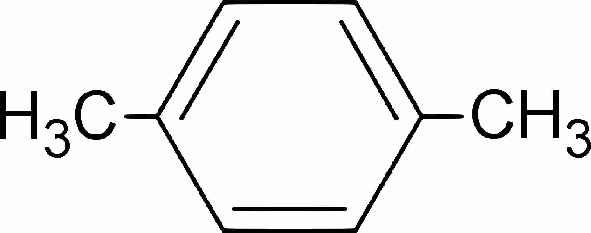 Chemical structure of 1,4-dimethylbenzene, better known as para-xylene.