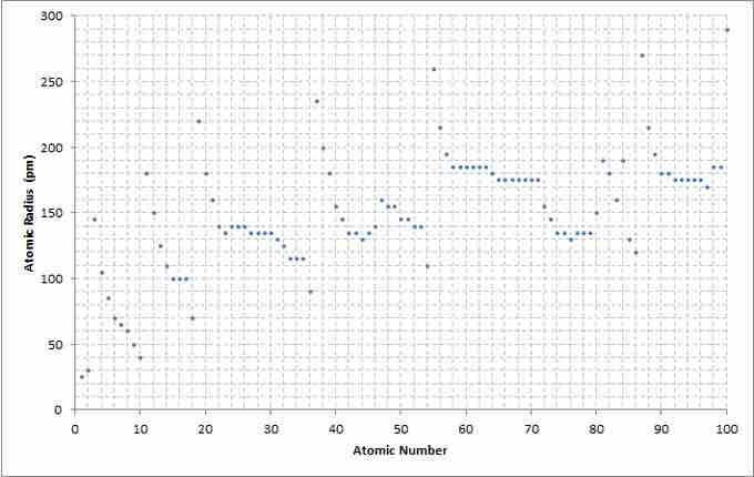 A chart showing the atomic radius relative to the atomic number of the elements.