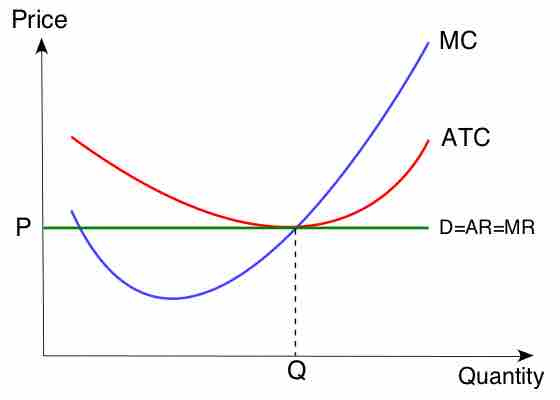 In the long-run, economic profit cannot be sustained. The arrival of new firms in the market causes the demand curve of each individual firm to shift downward, bringing down the price, the average revenue and marginal revenue curve. In the long-run, the firm will make zero economic profit. Its horizontal demand curve will touch its average total cost curve at its lowest point.