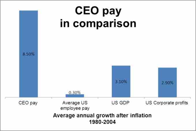 CEO pay growth compared to employee salaries, U.S. gross domestic product, and overall U.S. corporate profits
