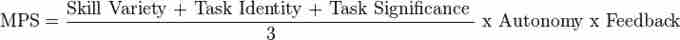 The Job Characteristics Theory uses this equation to estimate the overall motivation inherent in a job design based upon the five core characteristics.