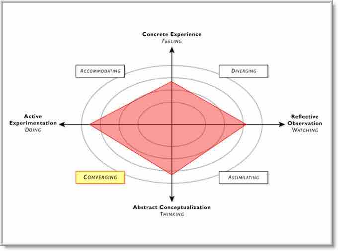 Convergers are characterized by abstract conceptualization and active experimentation. They are good at making practical applications of ideas and using deductive reasoning to solve problems.