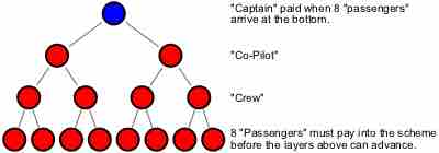 This business practice relies on getting the initial investor or "captain" to enroll others for a fee to them who in turn will also enroll others in order to get paid.
