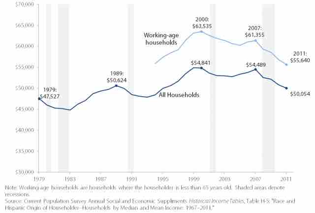 Real median household income, 1979-2011