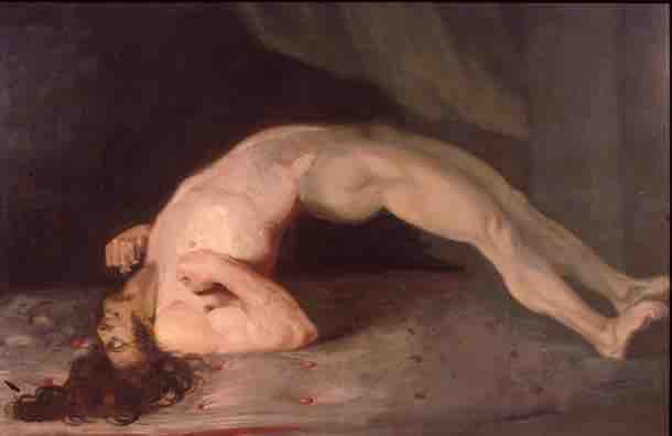 Muscular spasms (specifically opisthotonos) in a patient suffering from tetanus. Painting by Sir Charles Bell, 1809.