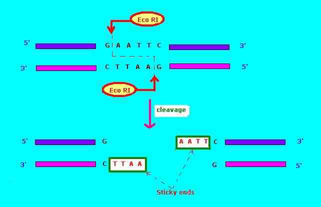 An example of a specific restriction enzyme, EcoRI, which exhibits the ability to target specific sequences within DNA.