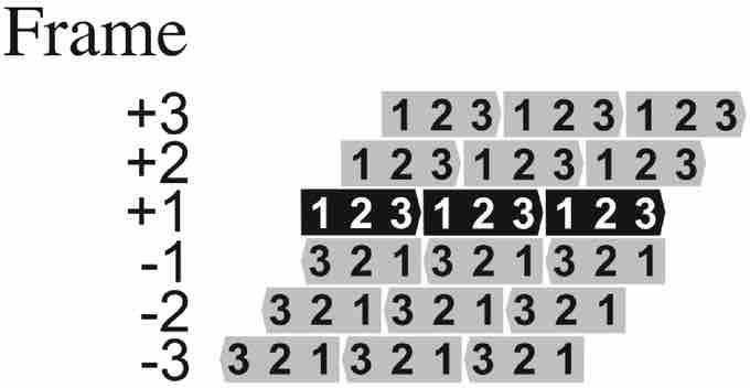 Frame +1 is the ORF predicted in the database to encode a protein. +2 and +3 are the other two potential ORFs in the same strand and -1, -2, and -3 are the three potential ORFs in the antisense strand.