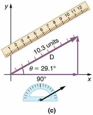 The vector in this image has a magnitude of 10.3 units and a direction of 29.1 degrees above the x-axis. It can be decomposed into a horizontal part and a vertical part as shown.
