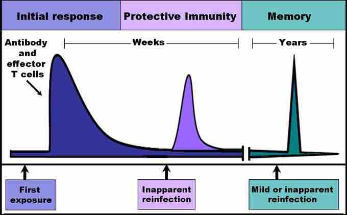 When B and T cells begin to replicate, some of the offspring that they produce will end up becoming long-lived memory cells. These memory cells will remember all specific pathogens encountered during the animal's lifetime and can thus call forth a strong response if the pathogen ever invades the body again.