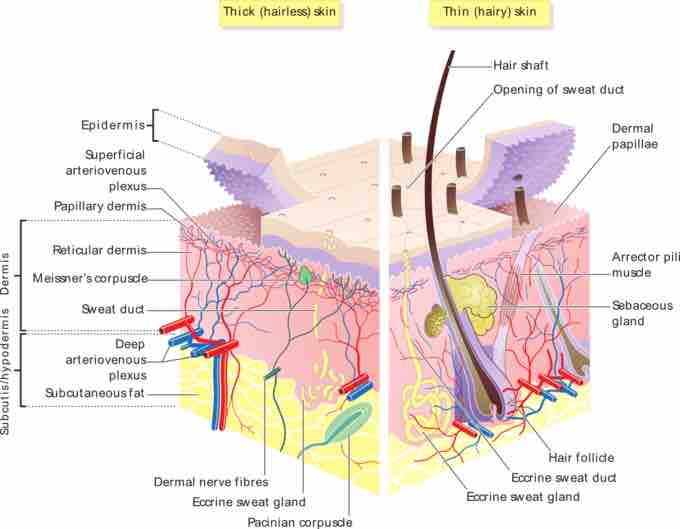 Our skin is made of three general layers. In order from most superficial to deepest they are the epidermis, dermis, and subcutaneous tissue.
