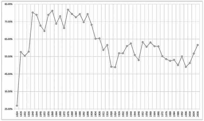 Graph of Voter Turnout in U.S. Presidential Elections, 1824-Present
