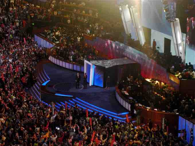 Minor figures in the party are given the opportunity to address the floor of the convention during the daytime, when only the small audiences of C-SPAN and other cable television outlets are watching. The evening's speeches - designed for broadcast to a large national audience—are reserved for major speeches by notable, respected public figures; the speakers at the 2004 Democratic convention included Ted Kennedy, a forty-year veteran of the United States Senate, and Jimmy Carter, a former Democratic President, while at the Republican convention speakers included Governor Arnold Schwarzenegger of California and Governor George Pataki of New York, two of the largest states in the nation.
