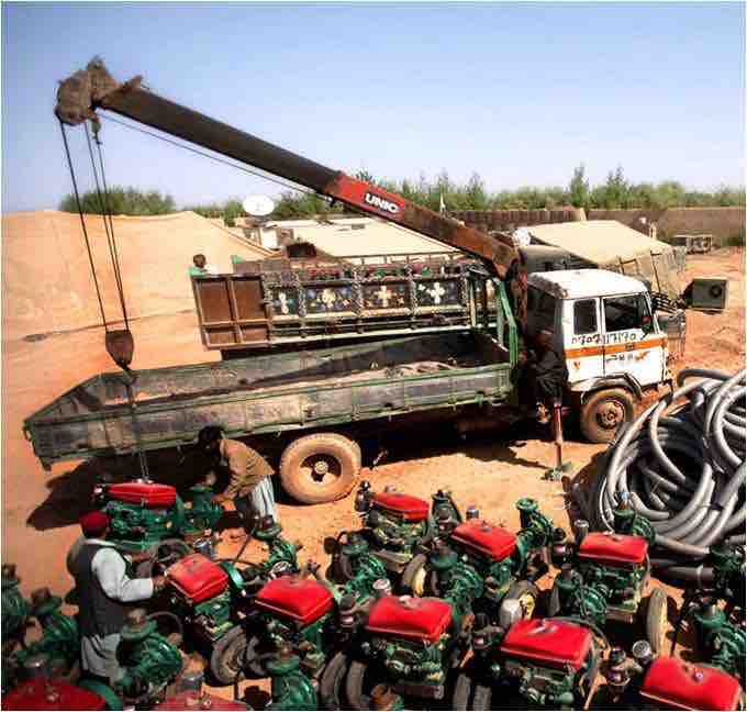 States can give economic aid to help another country's economic development. In this picture, the US government has supplied water pumps to a village in Afghanistan.