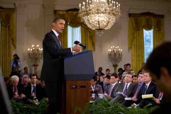 Press conferences are one way in which politicians can engage journalists in spin, or interpreting an issue or event in the favor of their political party.