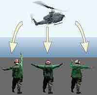 Military air marshallers use hand and body gestures to direct flight operations aboard aircraft carriers.