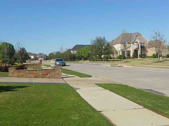 Suburban neighborhoods often feature large, manicured lawns.