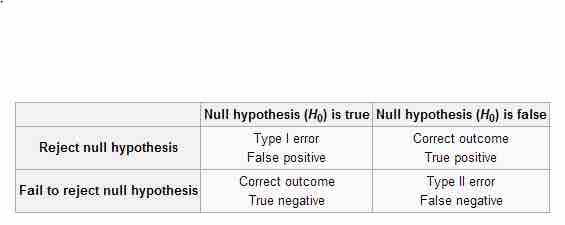 This table depicts the difference types of errors in significance testing.