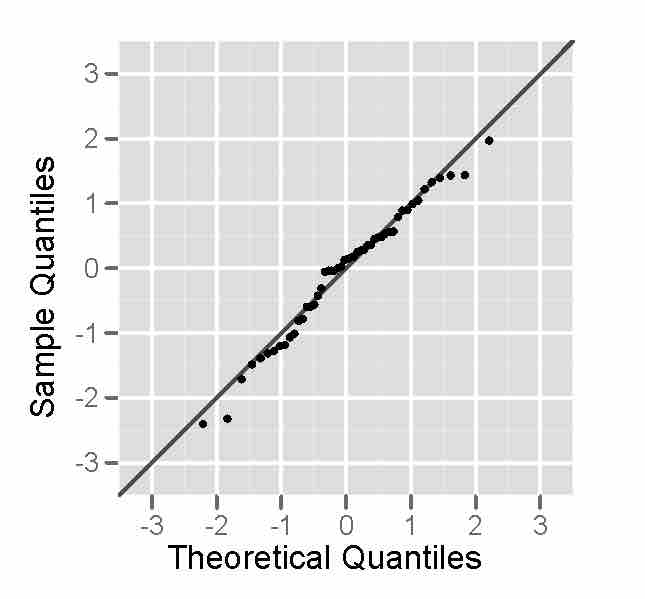 The data points do not deviate far from the straight line, so we can assume the distribution is approximately normal.
