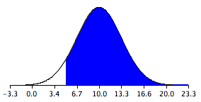 The resulting sampling distribution as diagramed in , is normally distributed with a mean of 10 and a standard deviation of 3.317.