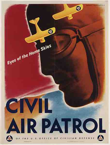 Civil Air Patrol poster produced for the Office of Civilian Defense as part of a campaign to build interest in joining CAP during World War II.