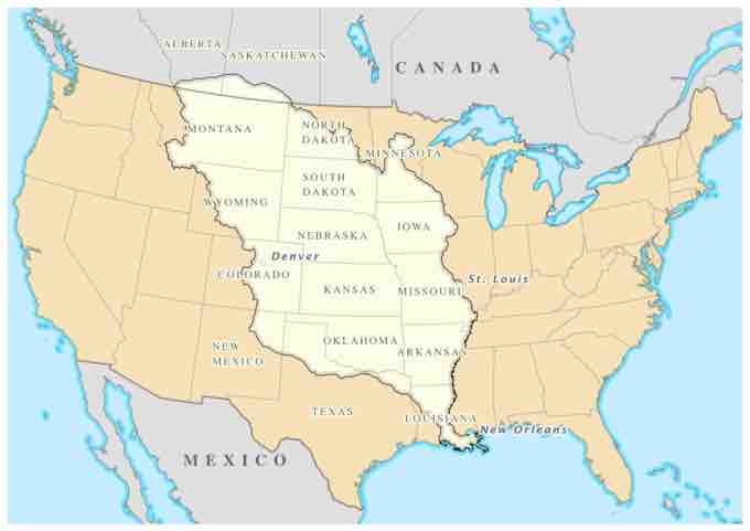 The Louisiana Purchase, often considered Jefferson's greatest achievement as president, involved the purchase of the entire Mississippi basin from Napoleonic France in 1803. The Louisiana Purchase doubled the size of the United States overnight, provided an outlet to the sea for the products of the western states, and ensured a place for the United States among the world's largest powers.