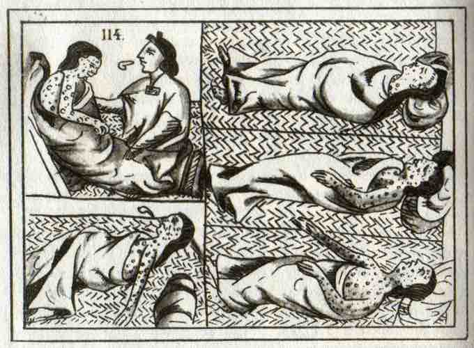 This 16th-century Aztec drawing depicts smallpox victims. A new epidemic of smallpox would ravage North America during the Revolutionary War.