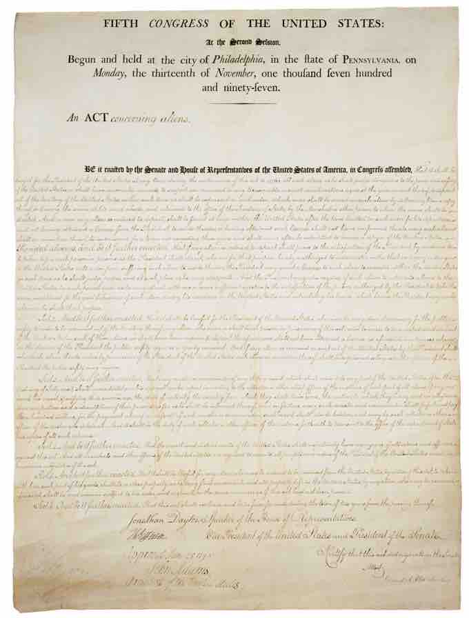 - The Naturalization Act repealed and replaced the Naturalization Act of 1795 and extended the duration of residence required for aliens to become citizens of the United States from five years to fourteen years.